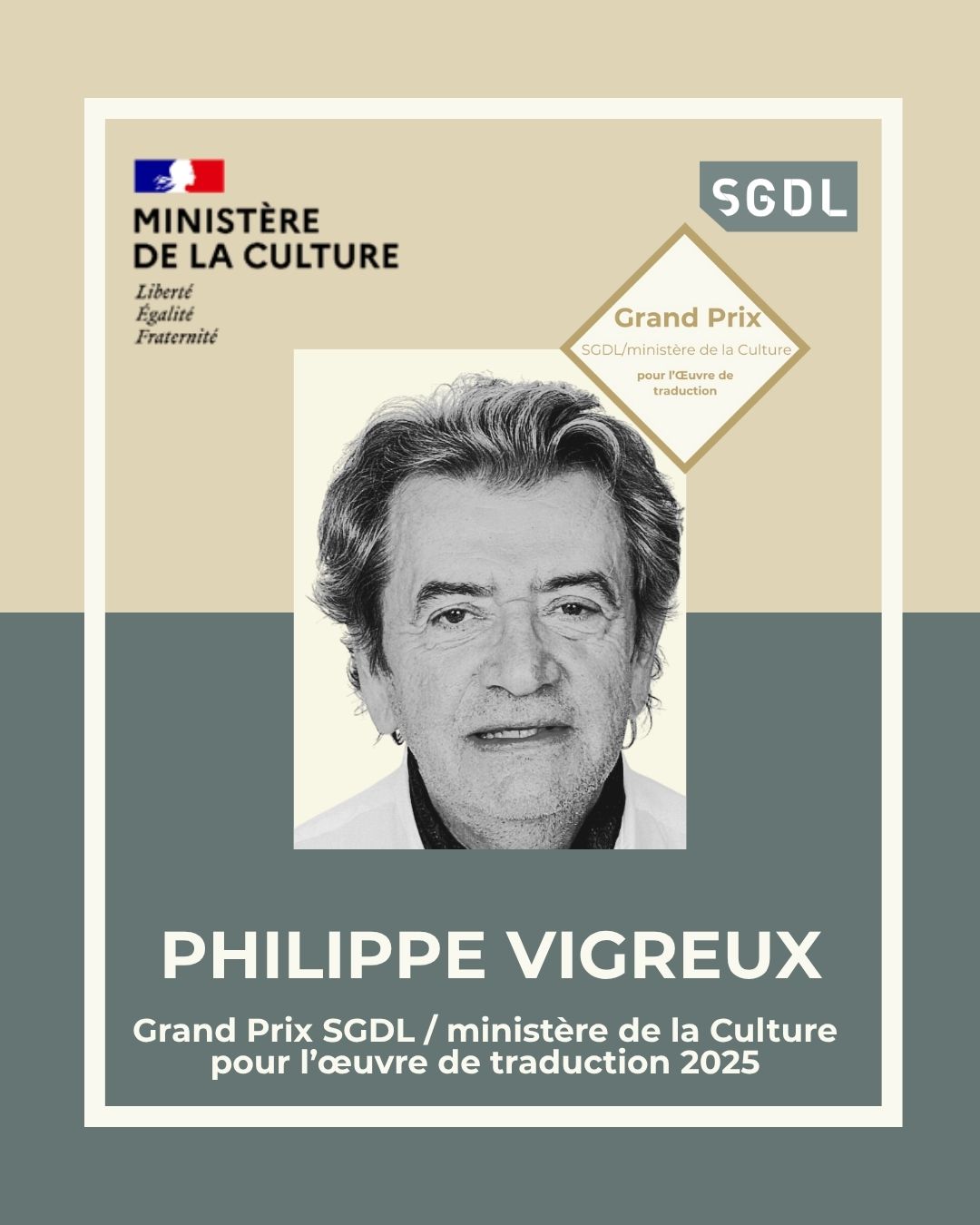Philippe VIGREUX lauréat du Grand Prix SGDL / ministère de la Culture pour l'œuvre de traduction